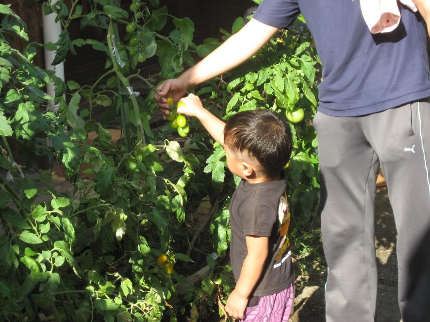 うさぎ組の畑に太陽をいっぱい浴びたトマトがなったよ。